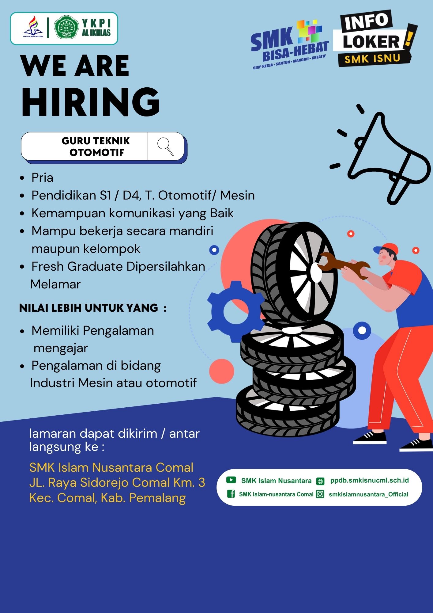 Membuka Kesempatan Bagi yang ingiin berkarir dan bergabung mennjadi Keluarga Besar SMK Islam Nusantara Comal