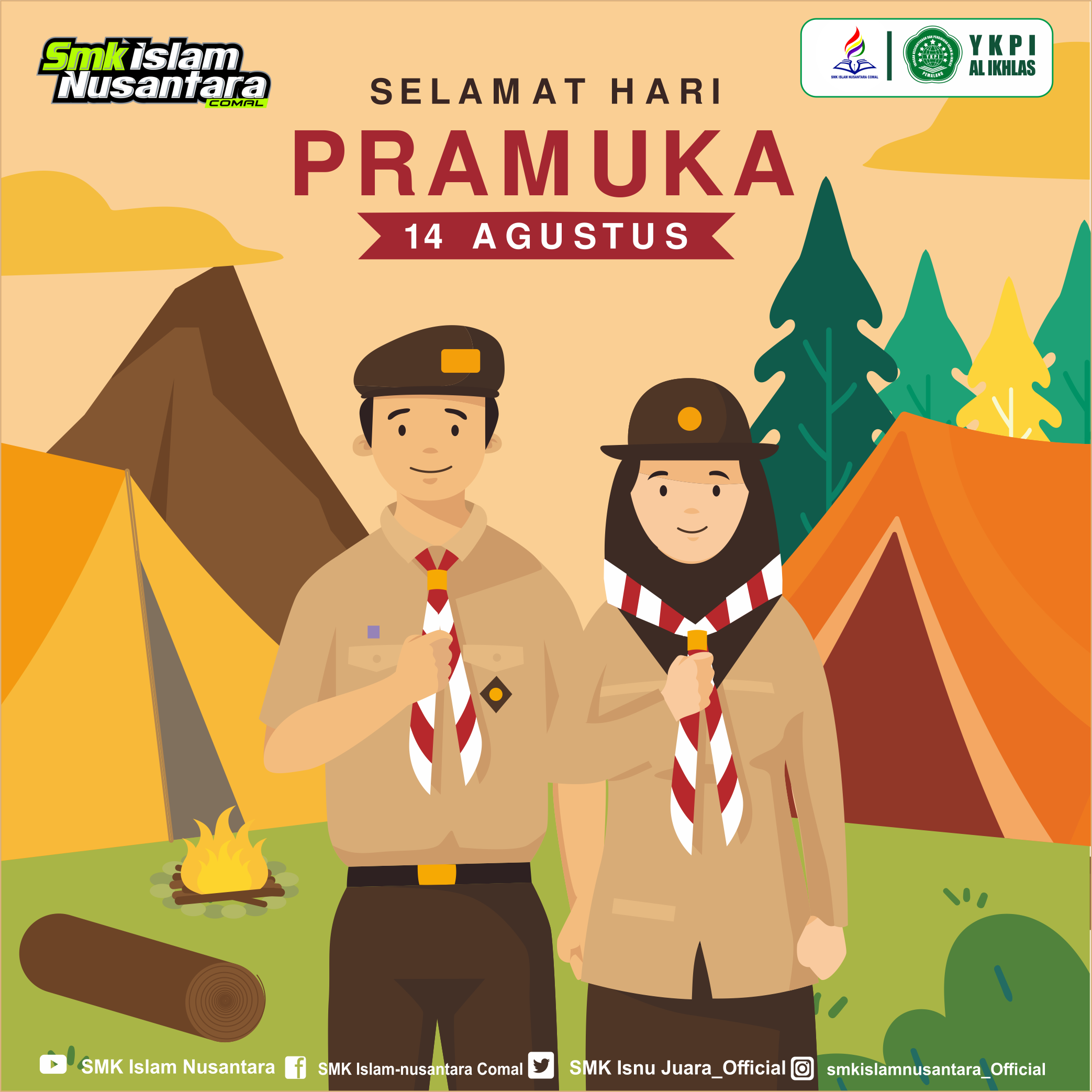 Selamat memperingati Hari Pramuka ke-63. Untuk seluruh Pramuka di Indonesia, ayo baktikan diri pada lingkunganmu. Tetaplah teguh mengabdi dan tetaplah semangat melayani. Salam Pramuka!